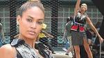 Joan Smalls gets air while clad in sparkly Air Jordans on NYC basketball court for shoot