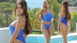 Demi Rose flaunts her derriere in bright blue thong bikini in Ibiza